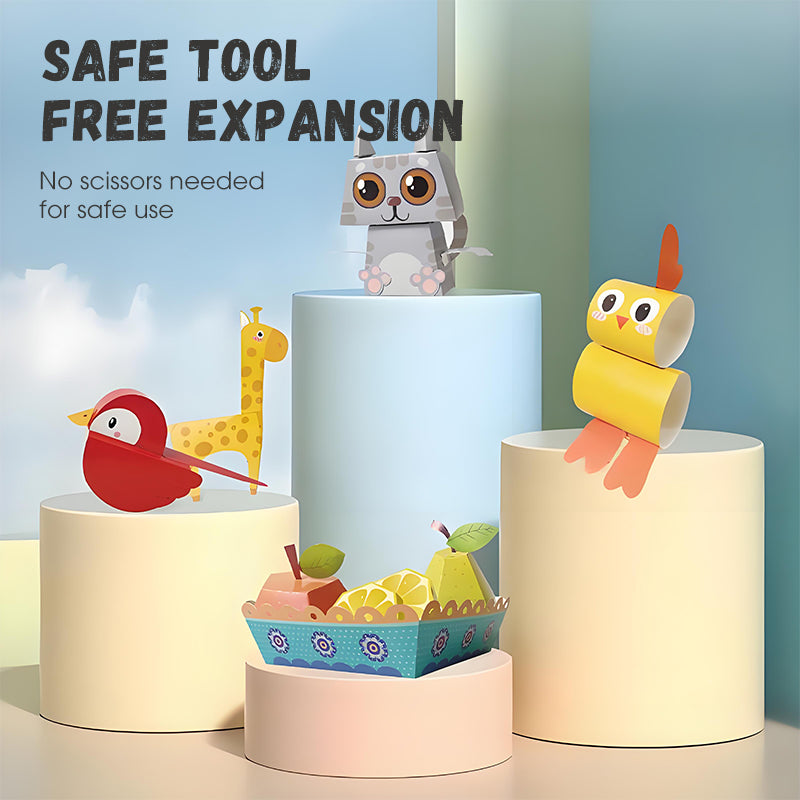 Sicherheit hat oberste Priorität. Das Buch verfügt über eine Stanztechnik mit vorgestanzten Schnittlinien, sodass keine Schere benötigt wird. Dadurch ist es perfekt für kleine Kinder geeignet – sie können Origami ohne Verletzungsrisiko genießen, was Eltern beruhigt.