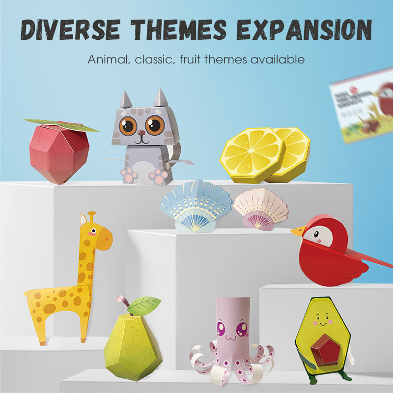 Das 3D-Handgefertigte Origami-Buch bietet eine fesselnde, praktische Aktivität. Mit drei Sets und insgesamt 49 einzigartigen Mustern erwachen Tiere, Früchte und klassische Formen in 3D zum Leben. Dies sorgt nicht nur für stundenlange Unterhaltung, sondern fördert auch die Kreativität, Feinmotorik und räumliche Vorstellungskraft von Kindern, während sie flaches Papier in detaillierte 3D-Modelle verwandeln.