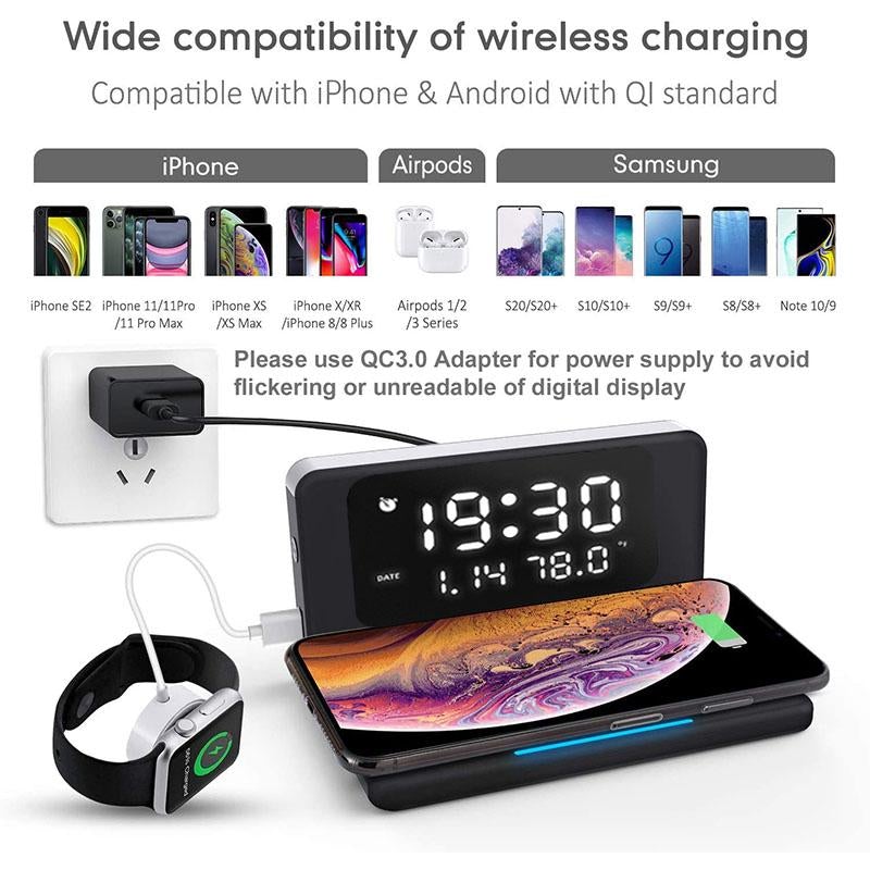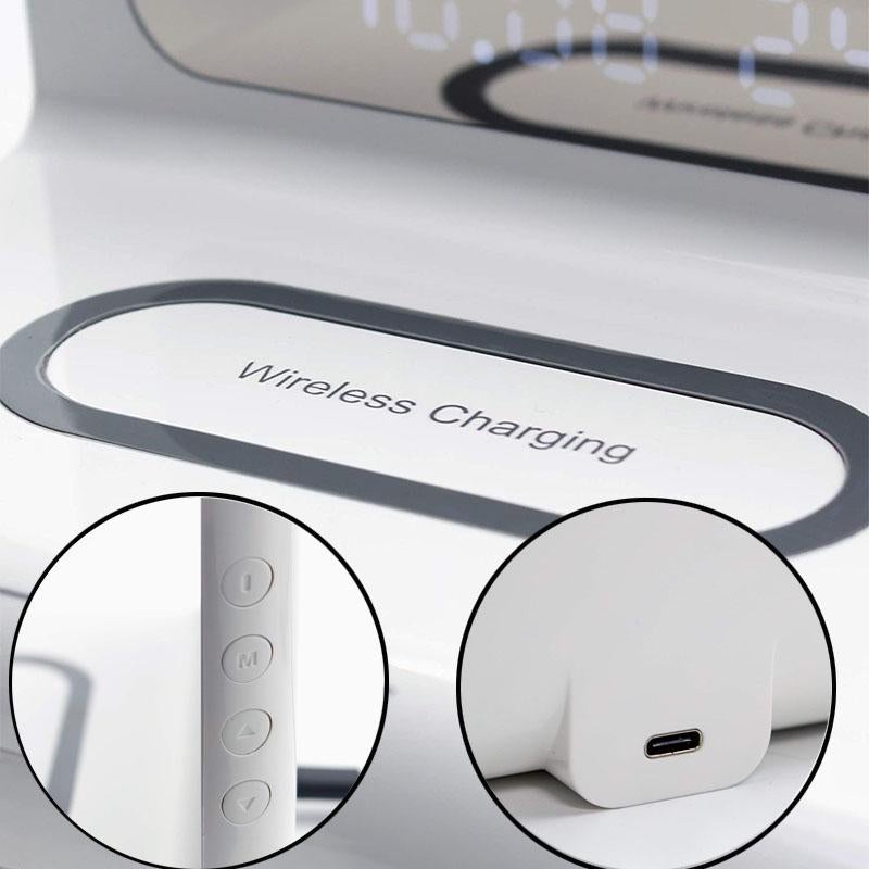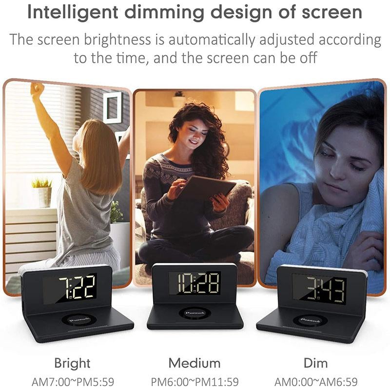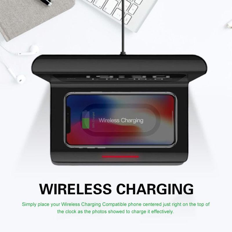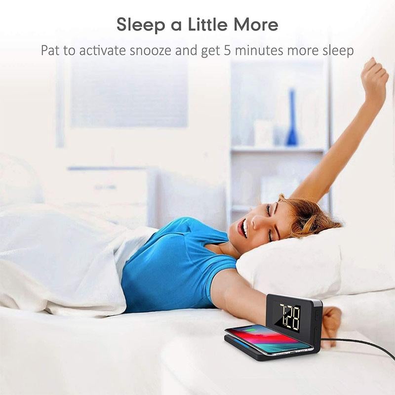 Wecker mit kabelloser Aufladung, Schnellladeuhr.