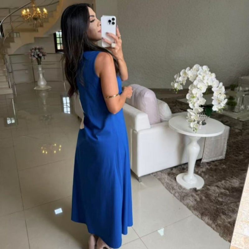 Ärmelloses Rundhals-Design : Der klassische Rundhalsausschnitt und die ärmellose Silhouette tragen zum modischen Look bei und können problemlos mit Accessoires, Jacken oder Strickjacken kombiniert werden, für Vielseitigkeit von Tag bis Nacht.