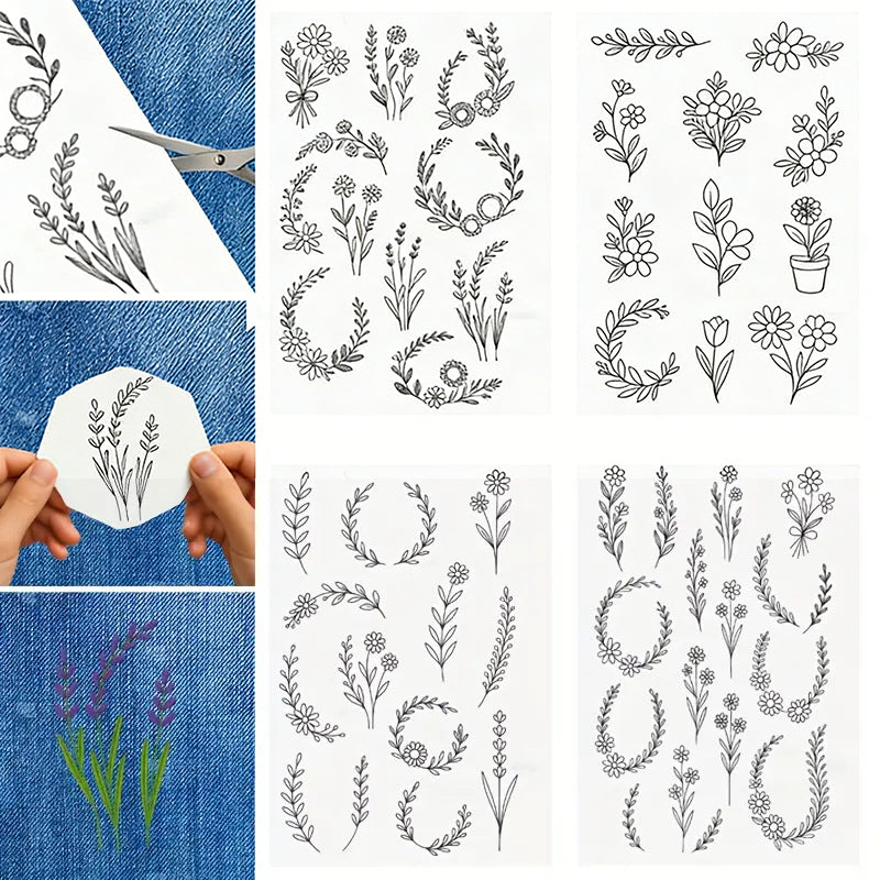STICK-AND-STITCH-DESIGN: Einfach das Trägerpapier abziehen und das Motiv auf Ihren Stoff aufbringen. Das umständliche Abpausen entfällt, sodass Sie Ihr kreatives Stickprojekt sofort beginnen können – präzise platziert und völlig mühelos.