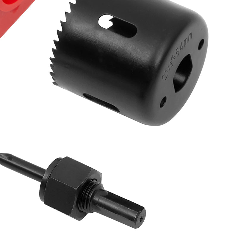 HOCHWERTIGES MATERIAL – Zwei Lochsägen sind aus langlebigem Karbonstahl gefertigt und die Führungsschablone besteht aus verstärktem Kunststoff, der eine lange Lebensdauer hat.