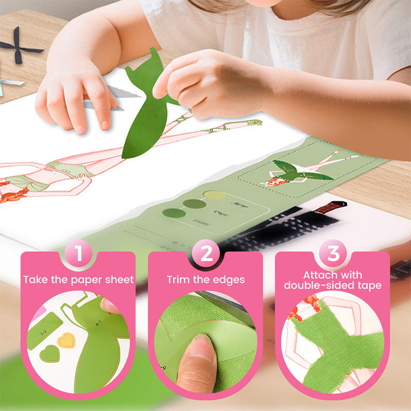 NO-SEW STICK-ON DESIGN - Ensures a safe and frustration-free creative process. Kids can easily attach fabrics to the models without needing needles or complex skills, allowing them to focus purely on their fashion ideas.