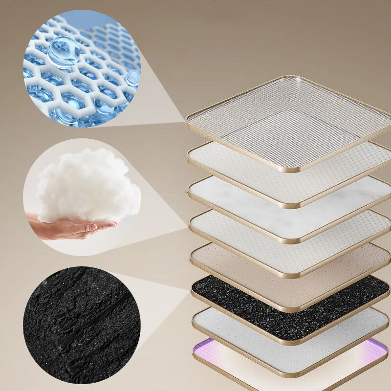 - Material: Hochpräzises PP-Vlies, Kokosnussschalen-Aktivkohle, Edelstahlfilter