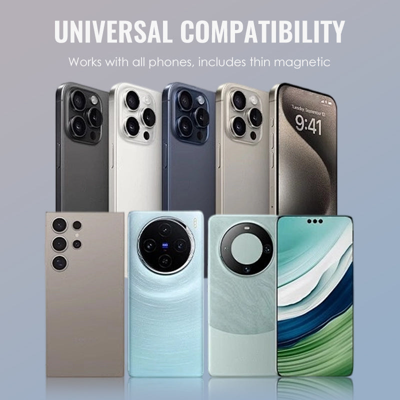 Enthält einen ultradünnen Magnetring – auch für nicht-magnetische Phones geeignet (einfach Ring auf die Hülle kleben).
