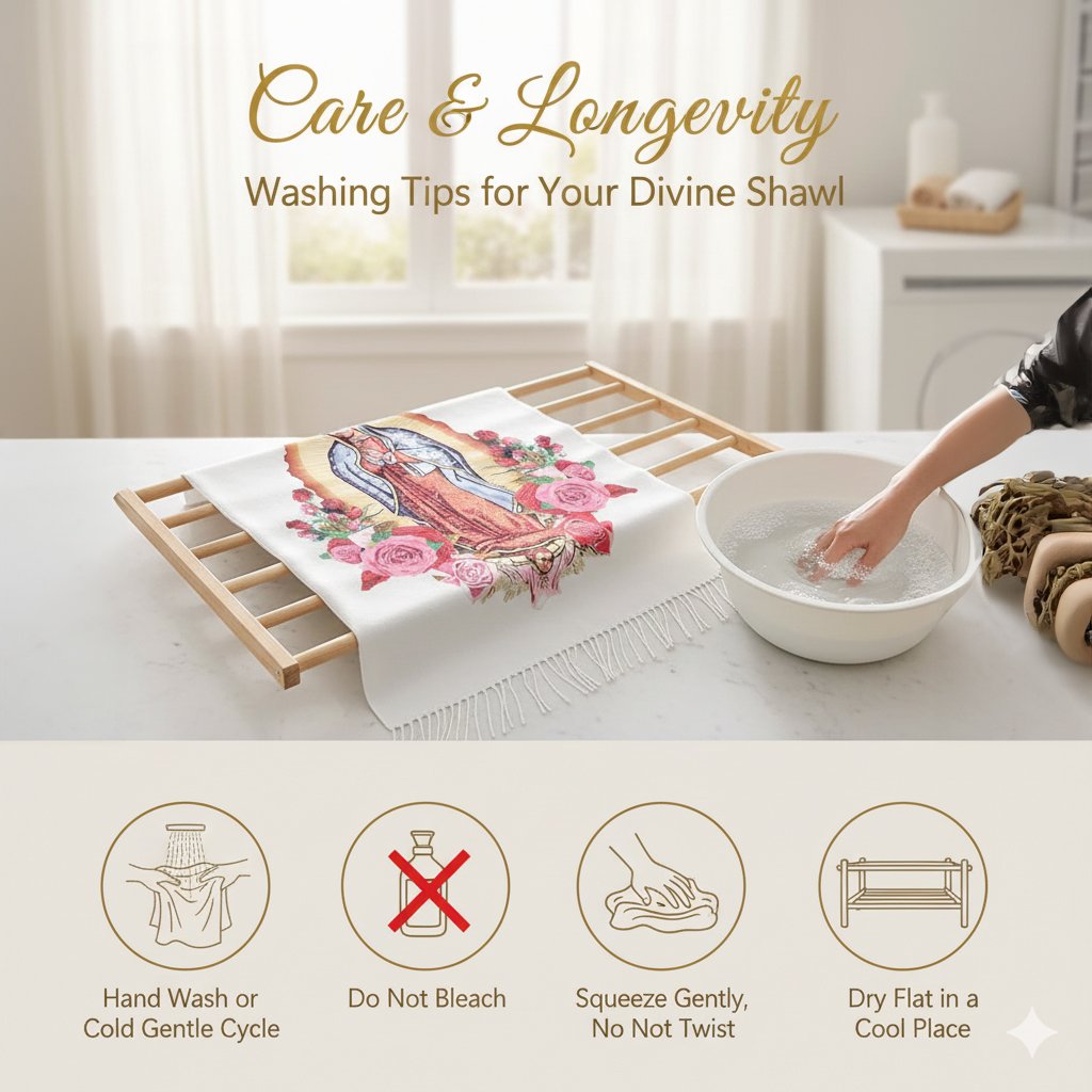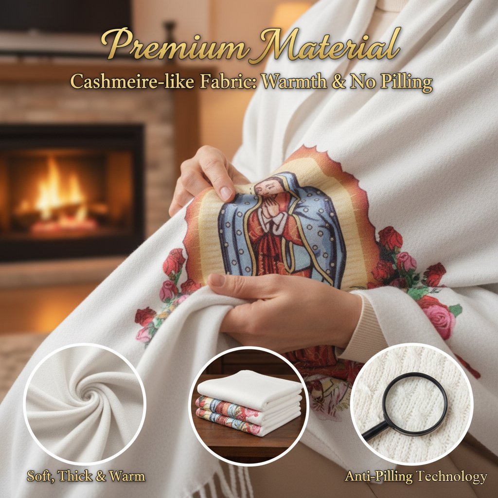 Jeder Schal zeigt ein eindrucksvolles Madonna-Motiv als Symbol des Friedens, der Hoffnung und des göttlichen Schutzes. Mehr als ein Accessoire – es ist eine tägliche Erinnerung an Glauben und Dankbarkeit in der heiligen Zeit.
