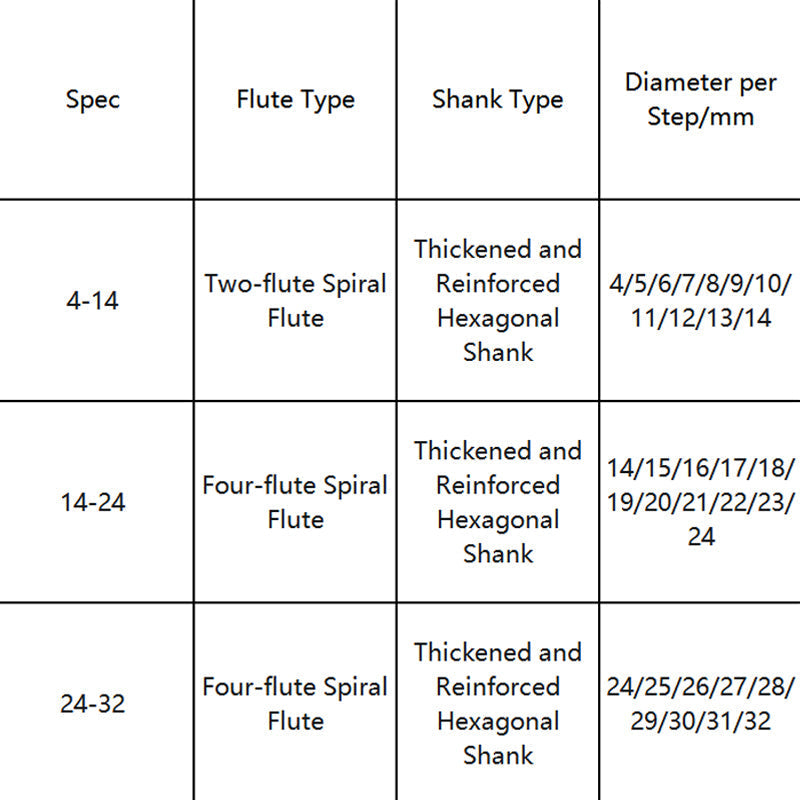 Lieferumfang: 1 x Spiralnut-Stufenbohrer-Set mit hoher Härte