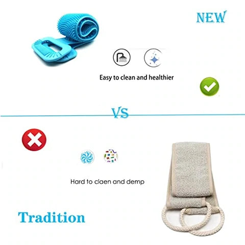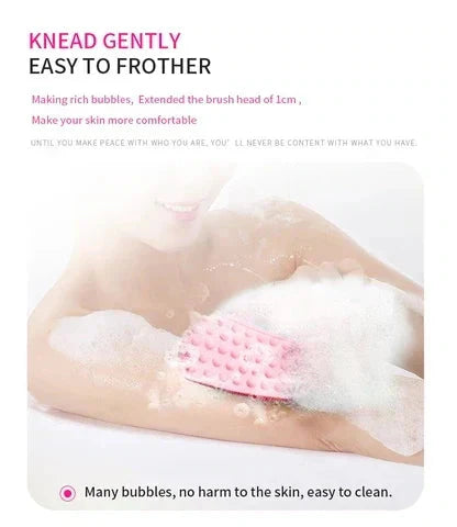 Einfache Duschzubehörteile für individuelles Körperpeeling. Eine Seite hat einen Silikon-Schwamm, der den Rücken massiert, um das Peeling zu verbessern, ohne die Haut zu verletzen; die andere Seite hat eine ovale Struktur, die jede Stelle Ihrer Haut massiert und die Blutzirkulation fördert.