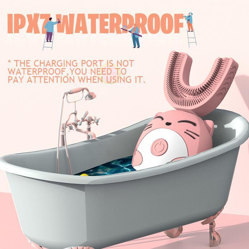 Die elektrische Kinderzahnbürste ist nach IPX7 wasserdicht und versiegelt. Sie kann mit Wasser abgewaschen werden, und das Baby kann sich auch beim Baden die Zähne putzen.
