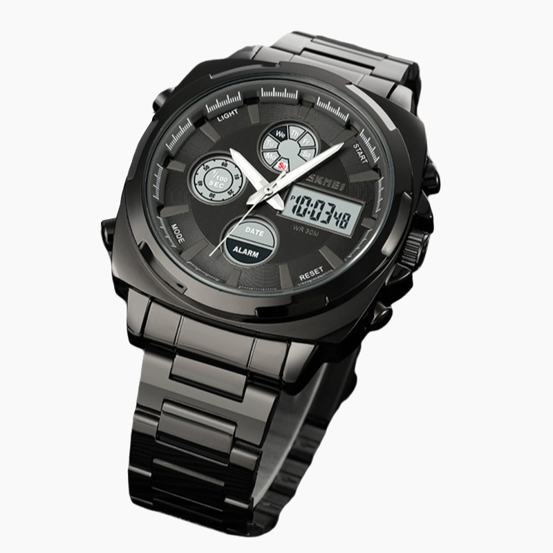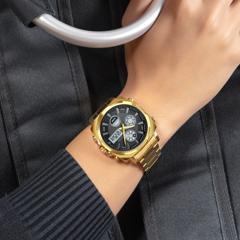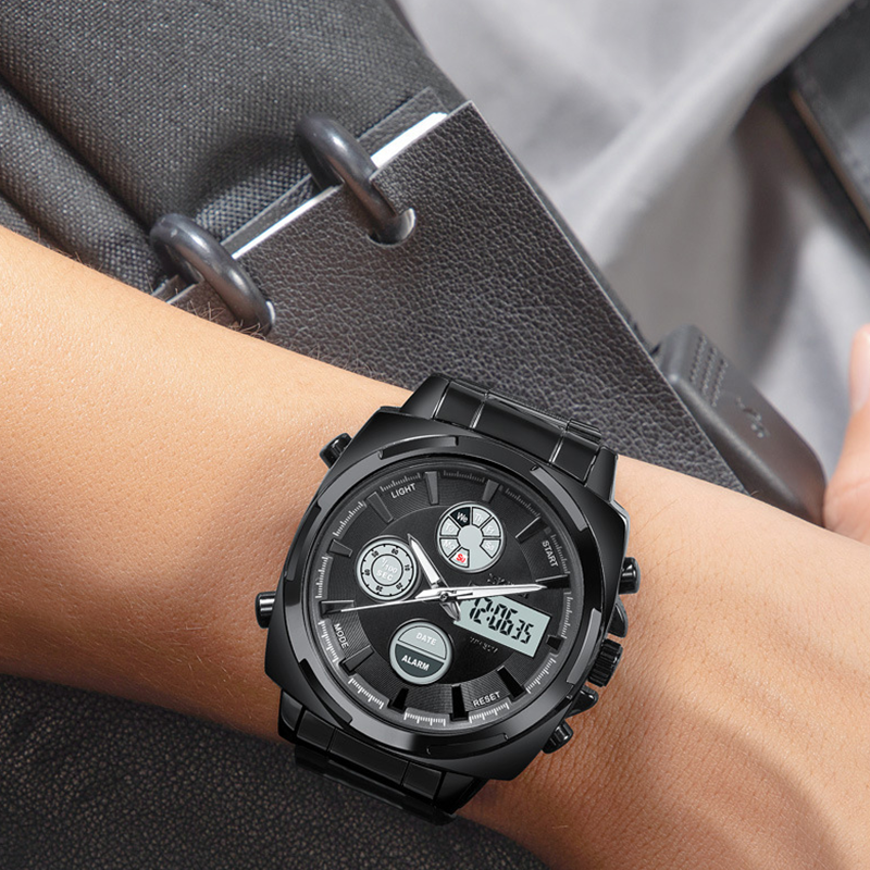 DUALER ANTRIEBSMECHANISMUS – Kombiniert präzise Quarzuhrwerke mit analogen und digitalen elektronischen Antrieben für eine genaue Zeitmessung und stellt sicher, dass sowohl Funktionalität als auch Zuverlässigkeit bei der Nachverfolgung von Stunden, Minuten und Sekunden gewährleistet sind.