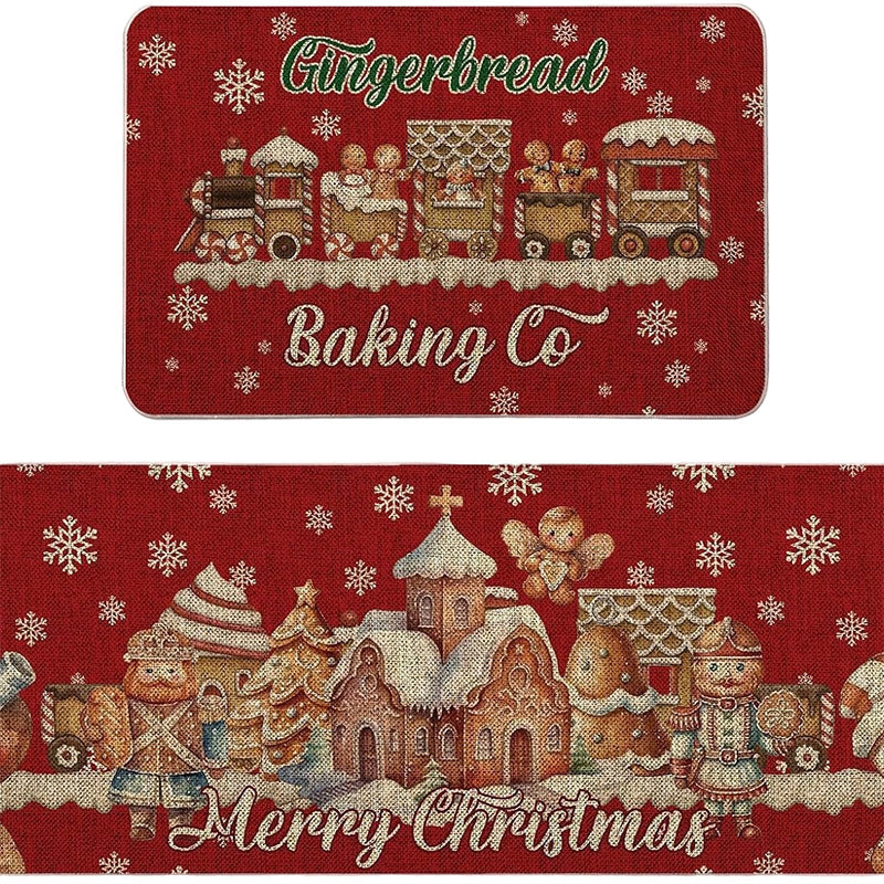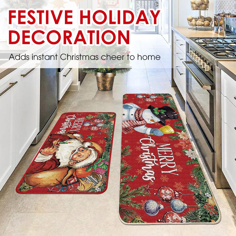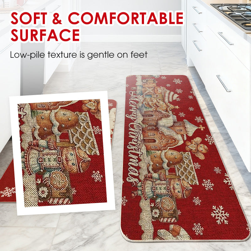 🎄✨Weihnachts-Küchenmatte für gemütliche Festtage - Rutschfest, leicht zu reinigen mit weihnachtlichen Dekormotiven