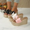 Package Includes:1*Bowknot PU Leather Wedge Slippers