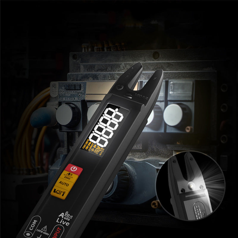 Dual-Mode-Messung: Professionelle Stromzange und Multimeter in einem Gerät. Präzise Messung von AC/DC-Strom (1–100 A) und Spannung (0,001–610 V) mit einer Auflösung von 6000 Zählern und einer Genauigkeit von ±0,8 % DC. Integrierte Messleitungen ermöglichen eine umfassende Schaltungsanalyse.