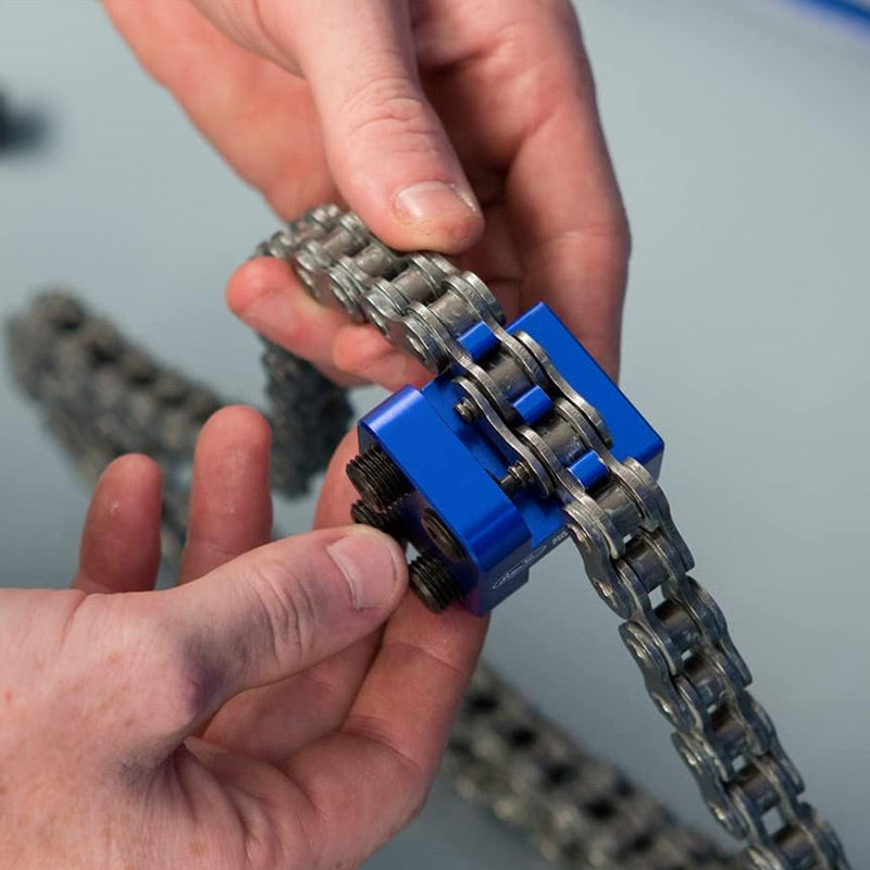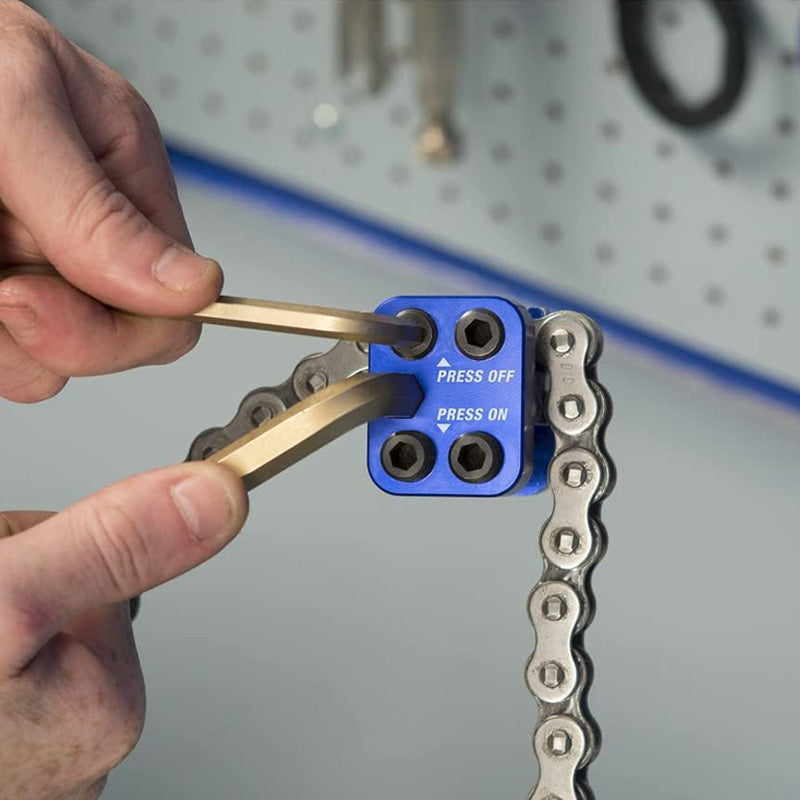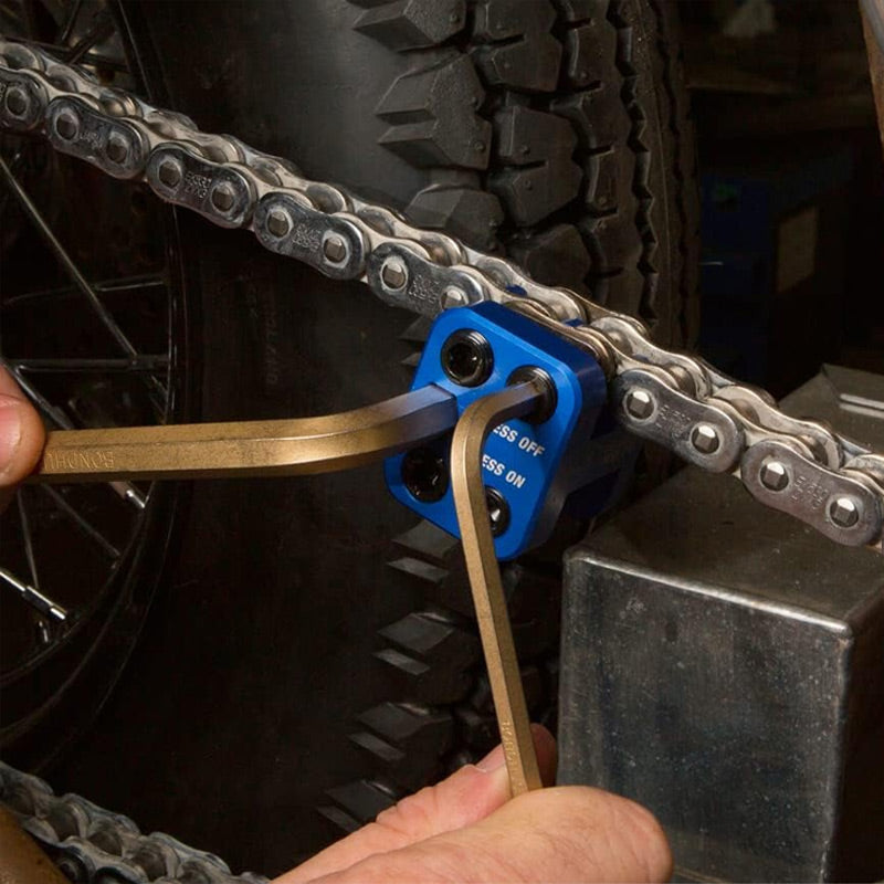 PERFEKT FÜR CLIP-ON-KETTEN – Dieses Werkzeug wurde speziell für die Verwendung mit Clip-On-Ketten entwickelt und bietet Präzision und Leichtigkeit beim Einpressen von Hauptverbindungsplatten, was es zu einem unverzichtbaren Bestandteil Ihres Wartungswerkzeugsatzes für Motorräder oder Geländefahrzeuge macht.