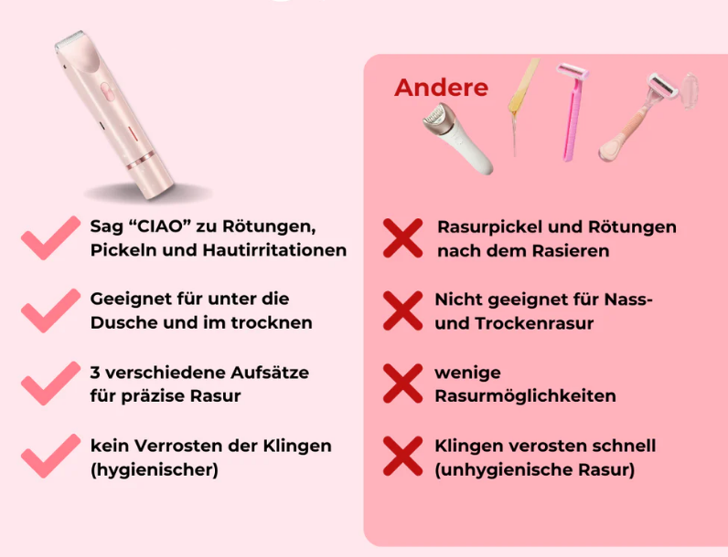 🌸 Keine Hautirritationen – Sanfte Rasur ohne Rötungen oder Pickel