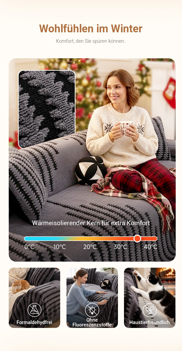 🛋️ 50% RABATT 2025! ✨ Plüsch Sofaüberwurf - Extra Dicke & Rutschfeste Decke mit Elastischen Kanten für Herbst und Winter 🍂❄️