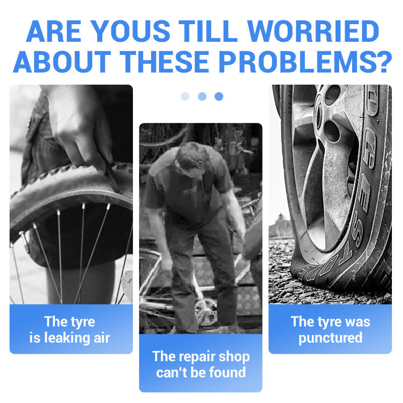 UNIVERSELLE KOMPATIBILITÄT: Funktioniert auf Auto-, Motorrad- und Fahrradreifen und bietet eine vielseitige Lösung für die schnelle Reparatur von platten Reifen bei verschiedenen Fahrzeugen, so dass alle Arten von Reifen und Reifenpannen problemlos repariert werden können.