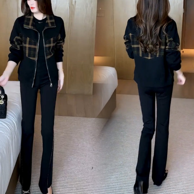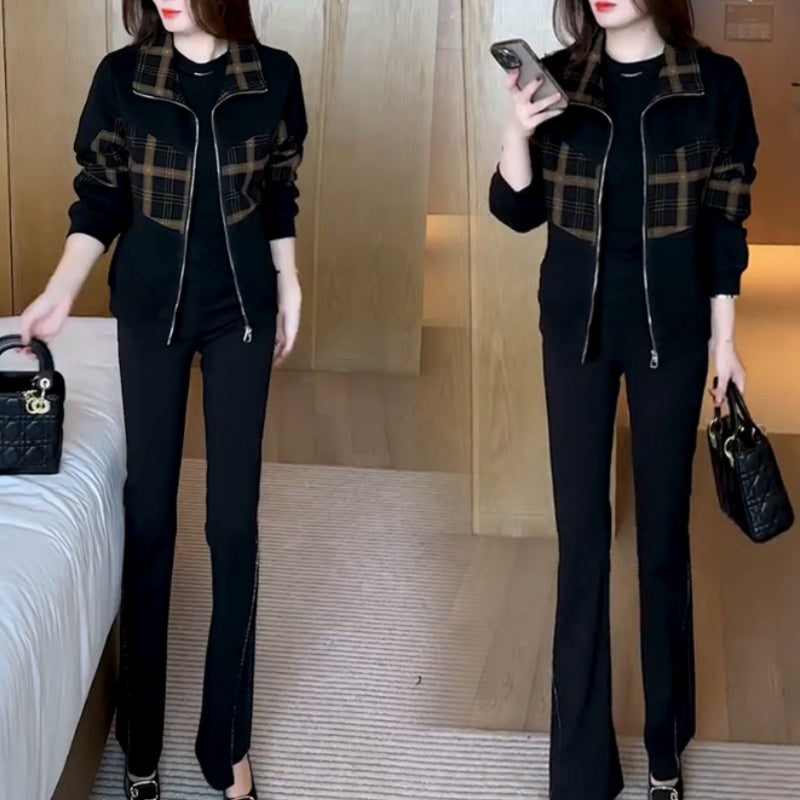 Paket enthalten: 1 * Stylische warme karierte Patchwork Jacke mit Reißverschluss für Frauen
