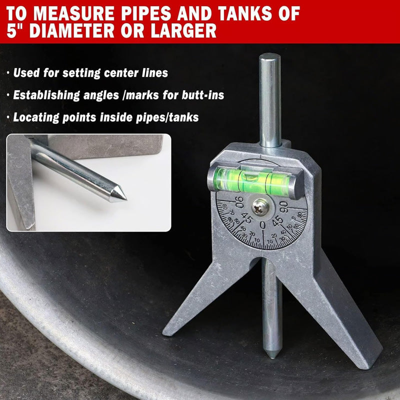 Vielseitige Anwendungen (VERSATILE APPLICATIONS) – Für Rohrleger, Schweißer, Metallbauer und Installateure entwickelt, die zuverlässige Mittel- und Ausrichtungsmarkierungen für Rohrverbindungen und Strukturarbeiten benötigen.